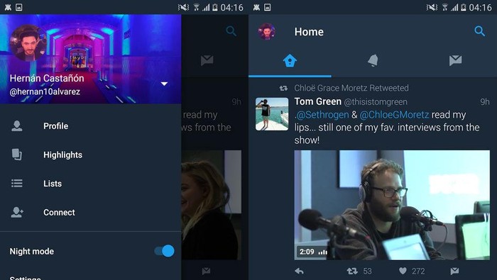 Dan untuk mengaktifkan fitur tersebut, Anda cukup mengklik tombol Night Mode yang Twitter letakkan di deretan menu samping. Untuk lebih jelas silakan lihat gambar di atas.