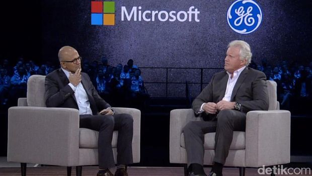 Tamu berikutnya yang menemani Satya adalah Jeff Immelt, Chairman & CEO General Electric (GE). Kedua eksekutif ini pun berbincang terkait transformasi digital dan berbagi pengalaman Jeff yang sudah bertahun-tahun memperkuat GE.