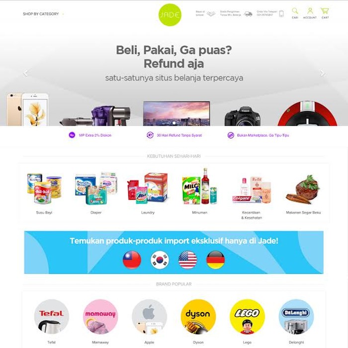 "Kami mau menjaga kepuasan customer dengan memberikan penawaran terbaik dan juga fasilitas 30 hari Refund tanpa Syarat. Karena Jade bukan marketplace, mengontrol kualitas produk-produk di Jade jadi lebih gampang." Tutur Daniel, CEO Jade.co.id