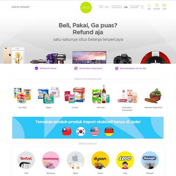 Dengan begitu, pelanggan tidak perlu khawatir akan mendapatkan barang-barang cacat, bekas ataupun palsu. Inilah yang menjadikan Jade.co.id diklaim sebagai satu-satunya situs belanja online yang terpercaya di Indonesia.