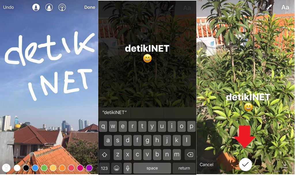 4. Setelah video atau foto dibuat, kita dapat membubuhkan coretan atau teks dengan menekan tombol berikon pensil dan huruf di bagian atas.