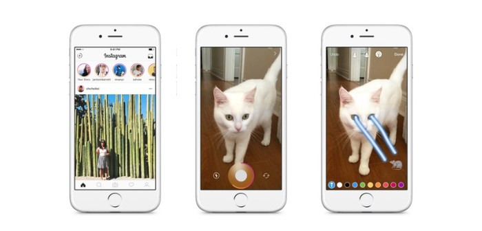 Fitur ini memungkinkan kita meng-upload foto dan video. Selayaknya Snapchat kita dapat menambahkan teks maupun coretan agar semakin menarik.