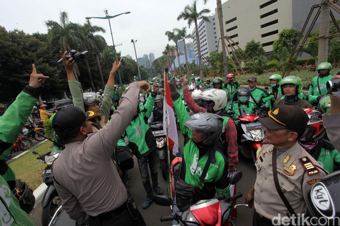 Sedangkan driver Go-Jek lainnya memilih bertahan. Mereka meminta bertemu dengan manajemen Go-Jek. Polisi meminta driver masuk ke kantor Go-Jek untuk mediasi namun pendemo menolak. Mereka ingin manajemen keluar untuk menemui mereka.