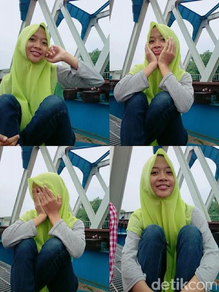 Ceritanya, Anisa Nur Hidayati (13), siswi SMPN Padangan ini bersama temannya Nuke (13), Senin (12/12/2016) sore, asyik berfoto ria di jembatan kereta api yang ada di atas Sungai Bengawan Solo, Desa Dengok Kecamatan Padangan.