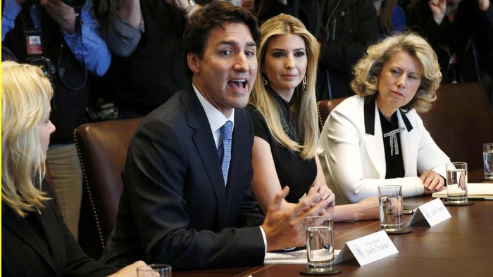 Dalam foto yang dilansir berbagai media, terlihat Trudeau duduk berseberangan dengan Trump dan keduanya dikelilingi belasan CEO dan pemimpin bisnis wanita. Nah, di sebelah kiri Trudeau, duduklah Ivanka yang sempat memberi sambutan setelah kedua kepala negara berbicara.