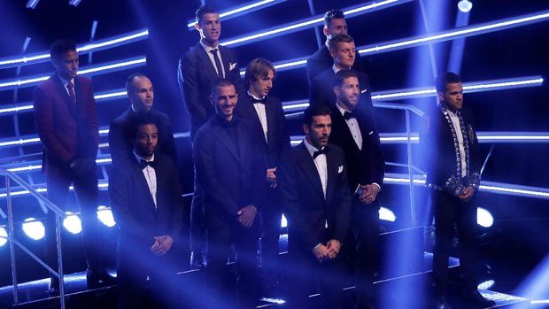 Selfie ini bukan sembarang selfie. Sebelas orang yang ikut nyengir di belakang Idris Elba--aktor asal Inggris yang jadi host The Best FIFA Football Awards 2017--merupakan winning eleven terbaik dunia saat ini dalam katagori FIFA FIFPro World XI 2017.