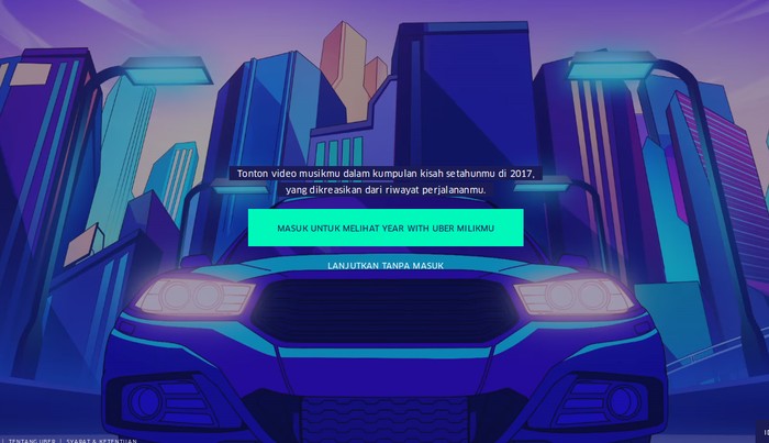 Kedua, klik atau tekan pada tombol Log in to See My Year With Uber atau Masuk untuk Melihat Year With Uber Milikmu di bagian bawah.