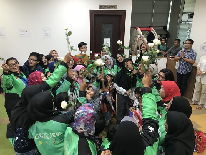 Menariknya, dalam acara ini ibu-ibu driver Go-Jek dikejutkan oleh sang anak. Mereka mendapatkan hadiah bunga mawar putih. Momen ini semakin haru ketika anak-anak mereka juga menyanyikan lagu "Kasih Ibu".