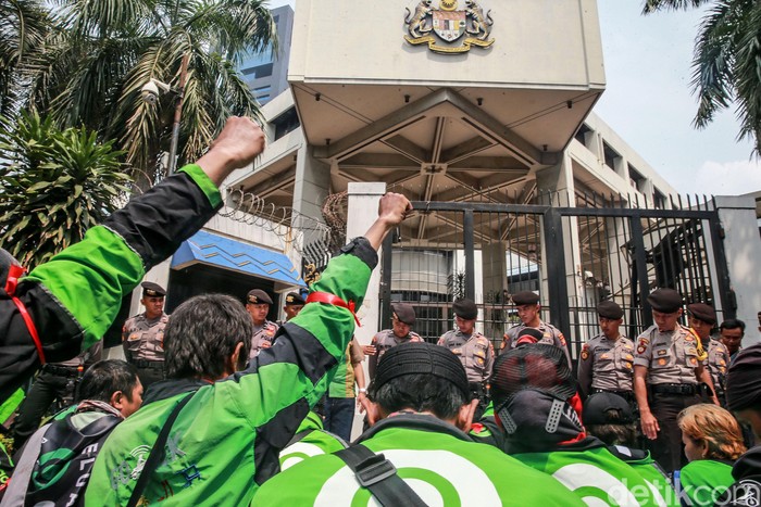 Demo Gojek di Kedubes Malaysia. Foto: Ari Saputra