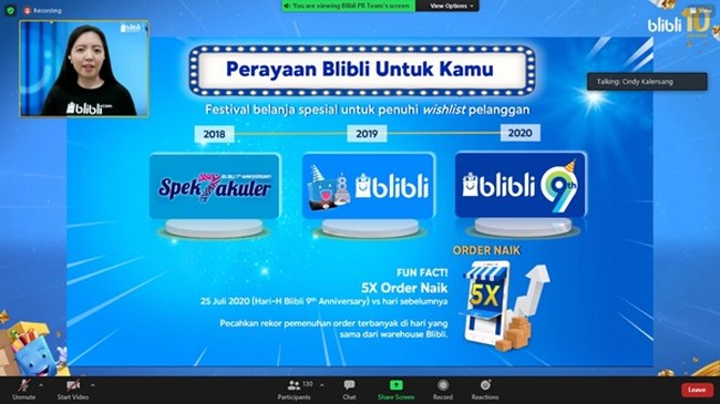 Di samping itu, Cindy menegaskan bahwa perayaan ulang tahun tersebut merupakan momen bagi semua penjual di Blibli untuk meningkatkan penjualan. Dalam hal ini, Blibli juga memberikan dukungan pemasaran digital, seperti pemberian paid ads credit Bliklan yang akan membantu meningkatkan traffic ke toko online para seller.