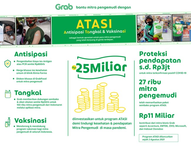 President of Grab Indonesia Ridzki Kramadibrata mengatakan Grab telah menginvestasikan Rp 25 miliar untuk program ATASI yang bertujuan untuk melindungi kesehatan dan pendapatan Mitra Pengemudi di masa pandemi.
