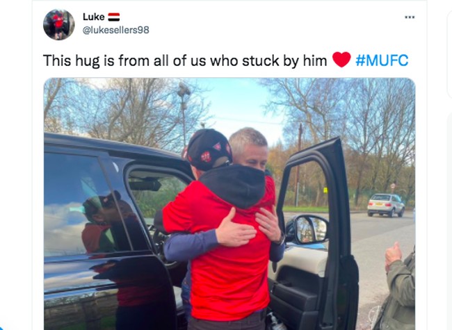 Dikutip detikINET dari Sports Bible, Ole awalnya mengucapkan selamat tinggal pada para pemain dan pelatih MU di tempat latihan di Carrington. Ternyata ada fans MU bernama Luke Sellers yang sudah menunggunya di tepi jalan.