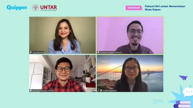 Pentingnya menanamkan pengetahuan dan wawasan mengenai pengembangan potensi diri sedini mungkin disadari oleh Quipper yang kemudian bersama Universitas Tarumanagara (Untar) sebagai ekosistem dan institusi pendidikan menyelenggarakan webinar dengan tema "Pahami Diri untuk Menentukan Masa Depan" pada tanggal 18 Februari 2022 lalu.