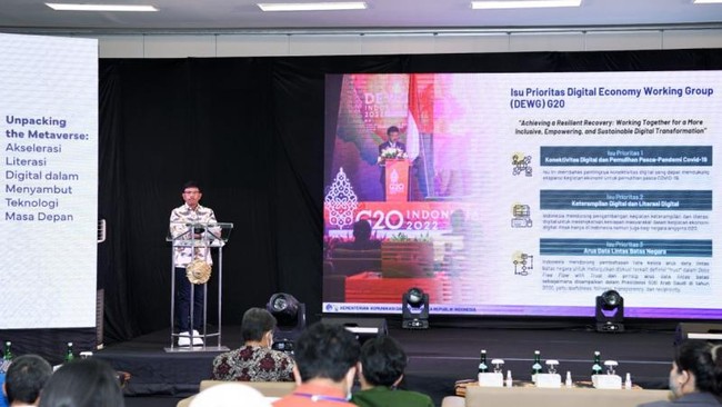 "Ini berasal dari konsep pembangunan infrastruktur digital negara-negara G20. Pembangunan infrastruktur digital tidak hanya fokus pada aspek teknis saja, melainkan juga memastikan setiap pembangunan dibarengi dengan kesiapan sumber daya manusianya, termasuk dalam konteks teknologi masa depan seperti Metaverse dan blockchain," paparnya.