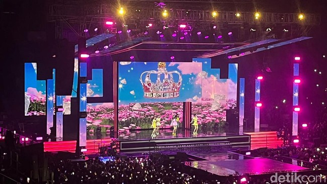 Red Velvet membuka penampilannya pada Sabtu (21/5/2022) dengan lagu Feel My Rhythm. Di momen ini, Irene, Seulgi, Wendy, Joy, dan Yeri tampil dalam busana warna-warni bernuansa kuning hingga ungu.