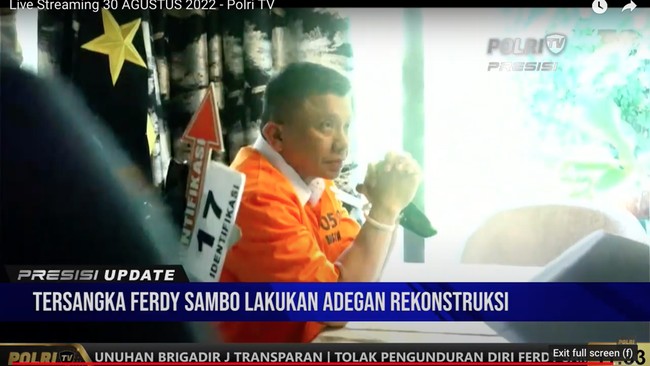 Proses rekonstruksi berlangsung di rumah dinas Irjen Ferdy Sambo di Jalan Saguling, Duren Tiga, Jakarta Selatan, Selasa (30/8/2022). Momen ini pun disiarkan langsung dari YouTube Polri TV.
