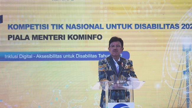 Menteri Komunikasi dan Informatika RI Johnny G Plate menyerahkan hadiah untuk para pemenang Kompetisi Teknologi Informasi dan Komunikasi (TIK) bagi Disabilitas Angkatan Kerja Tingkat Nasional Tahun 2022. Dalam kesempatan tersebut, ia turut mengapresiasi Badan Aksesibilitas Telekomunikasi dan Informasi (BAKTI) Kominfo yang telah mengupayakan wujud nyata inklusi teknologi digital.
