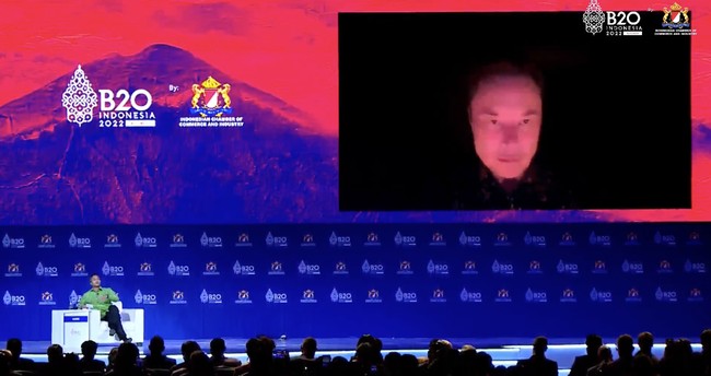 Elon Musk menjadi pembicara secara virtual di ajang B20 sebagai bagian dari KTT G20. Orang terkaya di dunia ini tanya jawab dengan Anindya Bakrie, Direktur Bakrie Group. Dalam salah satu momen, Elon tampak kaget melihat wajahnya sendiri dalam video.