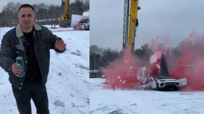 Mikhail membuat kaleng berukuran besar minumannya yang kemudian diangkat dengan derek. Sebuah SUV Lamborghini Urus putih yang diparkir tepat di bawahnya. Beberapa detik mobil mewah itu seketika hancur saat kaleng Lit Energy dijatuhkan di atasnya.