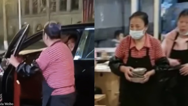 Dalam rekaman yang pertama kali diposting ke Weibo baru-baru ini, sang wanita terlihat melangkah keluar dari Bentley warna hitam. Dia mengenakan kemeja merah muda bergaris, sepatu bot karet dan celemek, tampak siap mencuci piring.