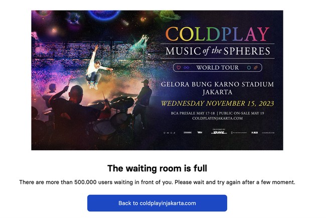 War tiket untuk konser Coldplay di Jakarta benar-benar gila. Beberapa netizen bahkan melaporkan tidak bisa masuk ke waiting room karena sudah penuh. Beberapa lagi mendapat antrean dengan puluhan ribu orang di depannnya.