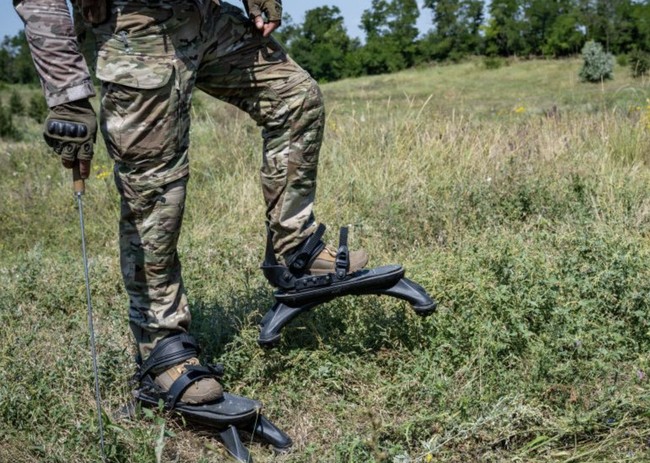 Jadi, para insinyur tempur dari brigade Penyerangan Gunung 'Transcarpathia' ke-128 Ukraina menggunakan sepatu bot laba-laba yang diproduksi di dalam negeri. Bot tersebut diikat di atas sepatu tempur untuk melindungi diri dari ladang ranjau yang menghambat serangan Ukraina terhadap benteng Rusia di Ukraina selatan.
