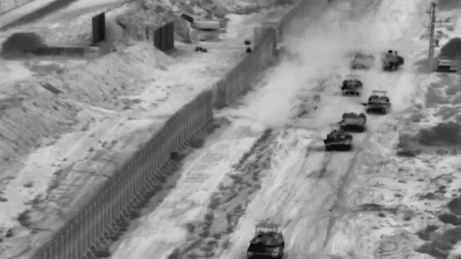 Rekaman yang dirilis oleh Israel Defence Forces (IDF) menunjukkan pasukan lapis baja menerobos tembok perbatasan dan maju melintasi tanah berpasir terbuka di pinggiran utara Gaza. Rekaman hitam putih yang kasar, diambil dari kamera pencitraan termal yang dipasang pada drone dan kendaraan, menunjukkan tank menembak ke sebuah sasaran.