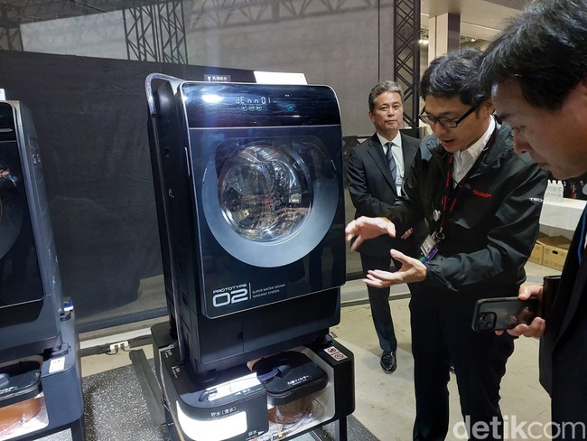 Salah satu yang dipamerkan adalah mesin cuci yang nyaris tidak memerlukan air. Bagaimana cara kerjanya? Jadi rupanya, mesin cuci Sharp yang satu ini dibekali sistem khusus yang terletak di bawah perangkat mesin cuci.