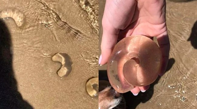 Di Facebook, seorang wanita membagikan temuan gumpalan bening tersebut. Gumpalan bening tersebut memiliki ukuran sebesar telapak tangan.