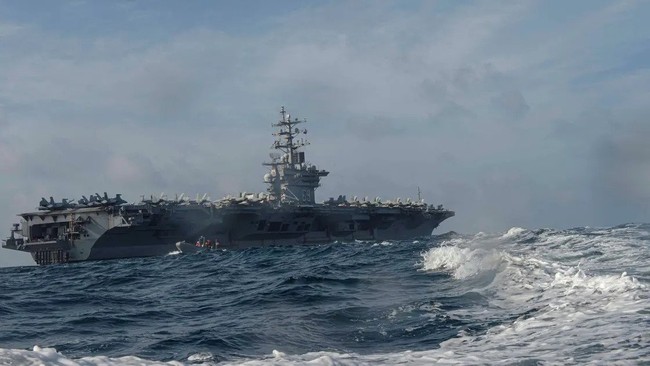 Kapal induk nuklir ini sudah beberapa saat dioperasikan di laut Mediterania dan membawa jet tempur termasuk F/A-18 Super Hornet yang ambil bagian dalam penyerbuan ke Yaman.