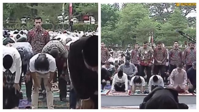 Viral di media sosial X video Pasukan Pengamanan Presiden (Paspampres) yang siaga ketika sedang salat bersama Presiden Joko Widodo. Mereka nampak melaksanakan ibadah di lapangan terbuka.