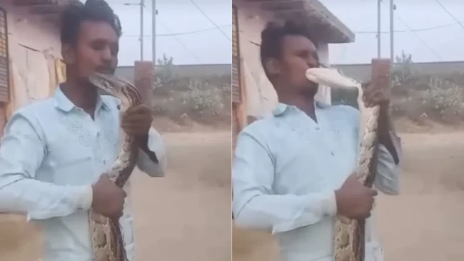 Ciuman sang ular tepat di mulut pria itu. Dia kemudian mati-matian melepaskan diri dari cengkeraman ular tersebut. Sayangnya ular tersebut tetap menempel erat di mulutnya selama beberapa menit.