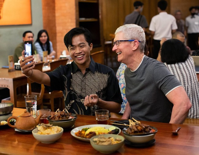"Halo Indonesia, apa kabar? Sate Ayam with iPhone photographer Sofyan Pratama was a perfect way to start my time in Jakarta! Looking forward to meeting even more of Indonesia's creative community and developers while I'm here!," cuit Tim Cook di akun X.com, dulunya Twitter.