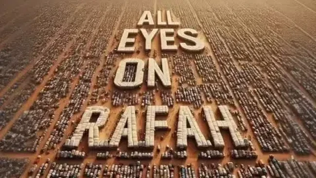 All Eyes On Rafah memiliki arti Semua Mata Tertuju ke Rafah. Kalimat ini merupakan sebuah panggilan kemanusiaan yang digaungkan atas tragedi di Rafah.