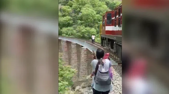 Pasangan di India mengalami luka parah setelah nekad berfoto di jembatan kereta. Keduanya melompat ke jurang sedalam 27 meter untuk menghindari kereta.