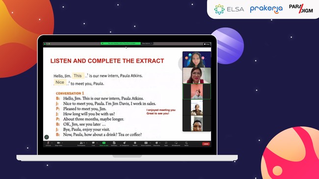 Kolaborasi ini diharapkan lebih banyak lagi tenaga kerja yang siap menghadapi tantangan ekonomi modern dan turut serta dalam kemajuan industri di Indonesia. Program yang diikuti oleh ratusan alumni Prakerja dari berbagai daerah ini dilakukans ecara online menggunakan aplikasi ELSA serta kelas bersama pengajar dari Paradigm.