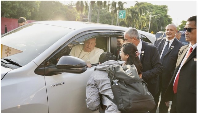 Dari video tersebut, Gregorius Bangkit dan Veronica Intan menunggu mobil yang ditumpangi Paus Fransiskus melintas menuju Kedubes Vatikan di Jakarta. detikINET sudah mencoba menghubungi Gregorio dan telah diizinkan untuk mengutip.
