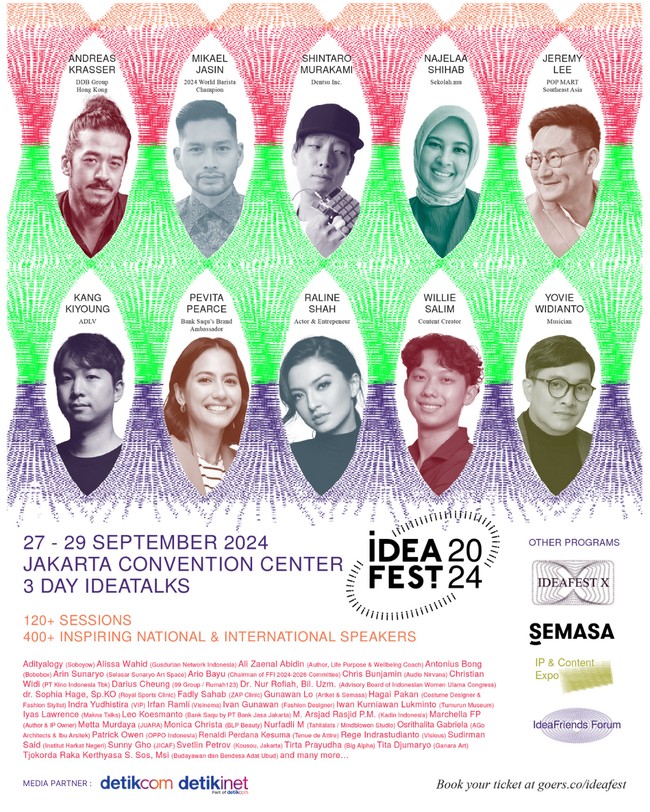 IdeaFest, festival kreatif tahunan akan digelar 27-29 September 2024. Siap-siap bertukar pikiran dan ide-ide brilian.
