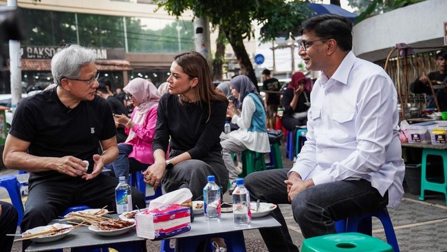 Selepas acara Indonesia AI Day yang digelar Indosat Ooredoo Hutchison (IOH), CEO Nvidia Jensen Huang rupanya makan di emperan Blok M, Jakarta diajak CEO IOH Vikram Sinha. Jensen memang dikenal suka wisata kuliner kaki lima.