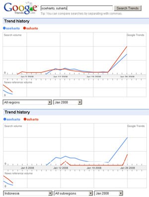 Google Dibanjiri Pencarian Soeharto - detikInet Selasa, 29 Jan 2008 11:21 WIB Tautan telah disalin Jakarta - (wsh/wsh) Tautan telah disalin