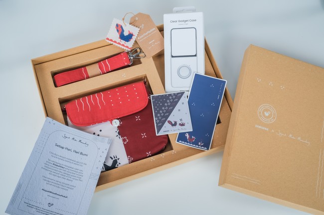 Paket eksklusif ini berisi pouch warna merah putih dengan motif batik khas Sejauh Mata Memandang dan tali pouch dengan warna senada. Ada juga skin eksklusif untuk Galaxy Z Fold 5 dan Galaxy Z Flip 5 dengan motif khas Sejauh Mata Memandang.