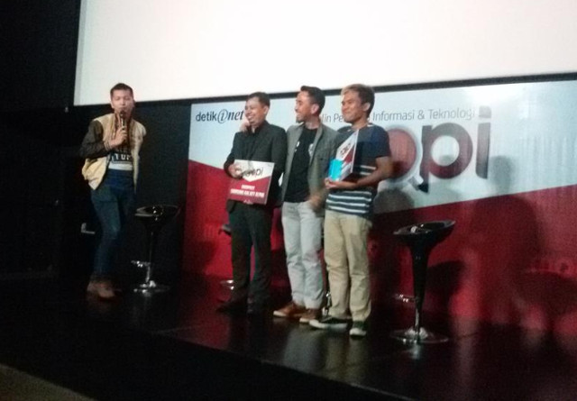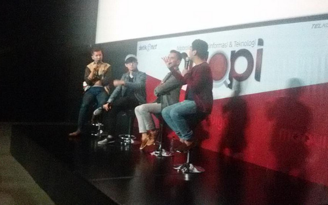 Di akhir acara, para pembicara menerima ucapan terima kasih dari detikINET dari Telkomsel. Dari kiri ke kanan, Adita Irawati Head of Corporate Communications Group Telkomsel, Eka Gustiwana, Aris Sudewo, Raditya Dika dan Pemimpin Redaksi Detikcom Arifin Asydhad.
