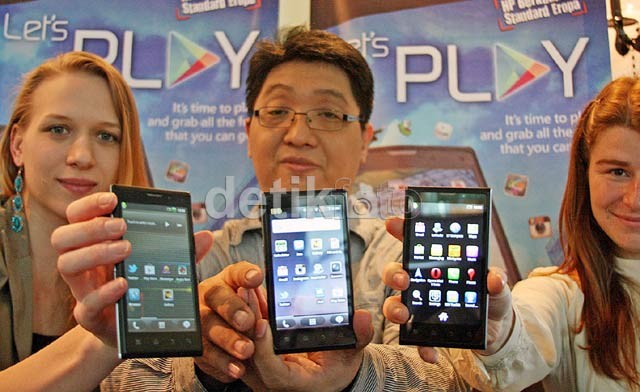 Ponsel pintar Cross meluncurkan Cross Andromeda A7 di Jakarta, Minggu(27/5). Android A7 menggunakan sistem Android dan menjanjikan kecepatan browsing serta berbagai fitur menarik.