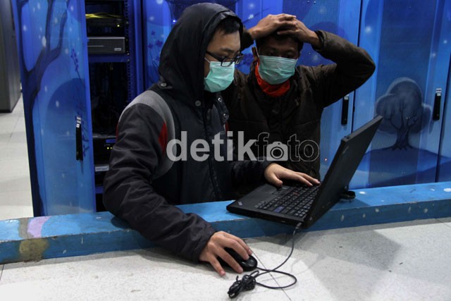 Sejumlah media online di Jakarta mengalami gangguan operasional akibat kebakaran UPS di IDC (Indonesian Data Center) Duren Tiga, Jakarta Selatan. Tim IT Detikcom pun melakukan perbaikan server di gedung IDC, Duren Tiga, Jakarta Selatan, Senin (13/8/2012).