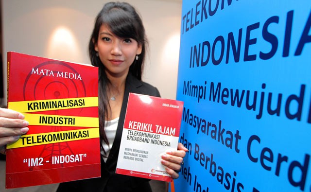 Indar Atmanto, mantan direktur utama IM2 yang dituduh melakukan korupsi menyalahgunakan jaringan 3G, menuliskan semua kejanggalan proses hukum, tuduhan dan pemeriksaan yang dialaminya dalam sebuah buku yang berjudul 'Kerikil Tajam Telekomunikasi Broadband Indonesia' di Jakarta, Selasa (11/6/2013).