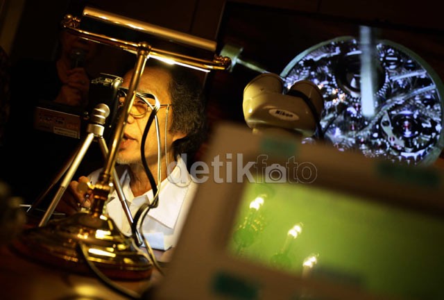 Seorang pakar pembuat jam tangan Seiko asal Jepang, memperagakan bagaimana cara membuat jam Seiko, Kamis (14/11/2013). Ia hadir dalam acara Seiko 100th Watchmaking β 5th Seminar Series of Monozukuri yang digagas oleh Indonesia - Japan Friendship Association (PPIJ).