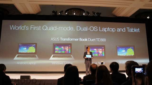 Teknologi Intel Dual OS langsung diimplementasikan Asus. Mengusung sebutan Transformer Book Duet, Asus menyodorkan notebook yang dapat menjalankan Windows 8.1 dan Android dalam satu perangkat dengan hanya satu chip prosesor.