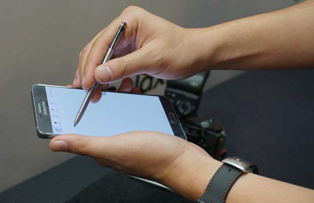 S Pen di Note 5 hadir lebih pintar. Dalam kondisi layar mati, pengguna bisa langsung bisa menulis di layar (S Memo).