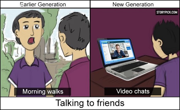 Dulu kita kerap bercakap dengan teman secara langsung. Kini menggunakan semua aplikasi pesan. (credit foto : storypick.com)