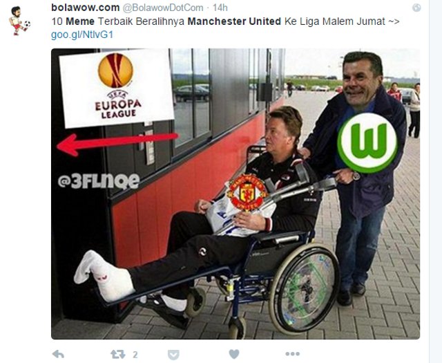 Meme yang menggunakan wajah mantan pelatih David Moyes setelah mendengar kegagalan MU. Di tangan Moyes, MU masih bisa melaju sampai babak berikutnya.